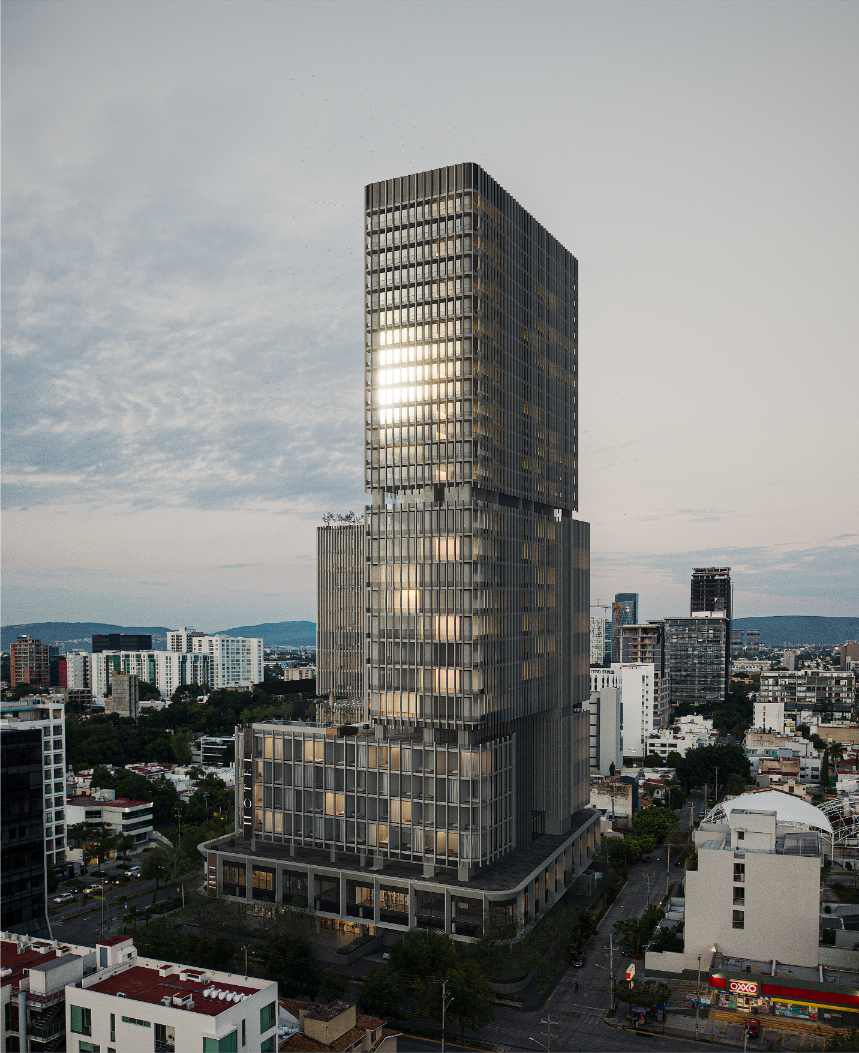 Atriva es un desarrollo de 10,300 m² rentables que integra dos niveles comerciales y una torre de oficinas, ubicado sobre Av. México, una de las avenidas más importantes y con mayor flujo de Guadalajara.